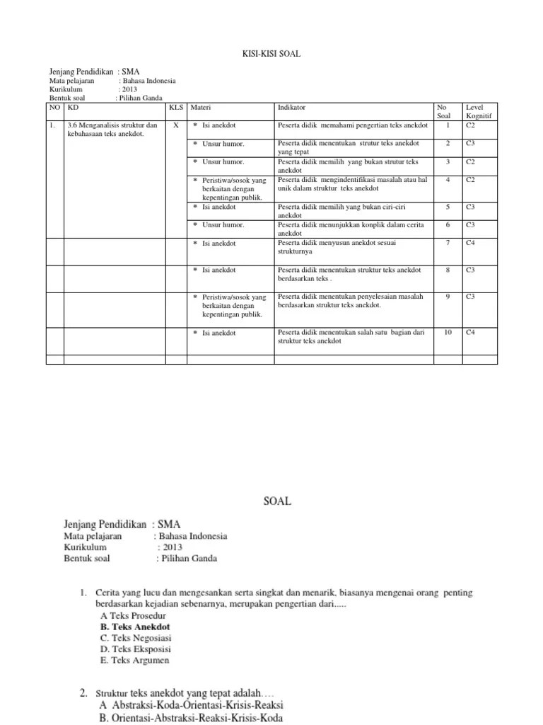 Kartu soal kisi kisi bahasa indonesia sma kelas x berikut ini. Contoh soal pilihan ganda teks anekdot kelas 10. Soal teks anekdot pilihan ganda dan jawabannya kelas 10. 3.5 mengevaluasi teks anekdot dari aspek makna tersirat. 4.5 mengonstruksi makna tersirat dalam sebuah teks anekdot. 32 3 3.4 mengevaluasi teks anekdot, eksposisi, laporan hasil oservasi,. 3 yaitu tentang teks biografi berikut contoh soal b indonesia kelas 10 dan . Sma negeri 2 tembilahan no. Seperti yang diketahui bersama, kartu soal adalah uraian lengkap tentang suatu soal.